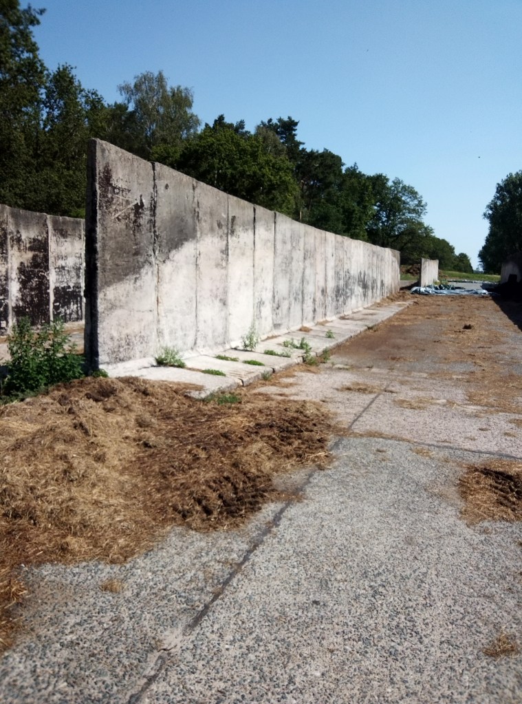 The first time I noticed that pieces of the wall had been used for something other than ornaments outside hotels around Berlin and elsewhere was whilst cycling along the Konigsweg behind Dreilinden. There are several old border buildings/ruins in the woods there and the famous pink tank memorial on a plinth. Closer to the Kleinmachnow road is a service yard with sections of former wall being used for sand and gravel storage.
