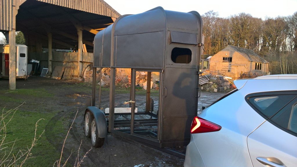 3 Monate vor diesem Foto hatten wir unseren Richardson Double Horse Trailer von Alex in Tadcaster gekauft. Yorkshire als funktionierendes Fahrzeug. Ich hatte es zu Phil gebracht, um es kugelgestrahlt und vorbereitet zu bekommen.